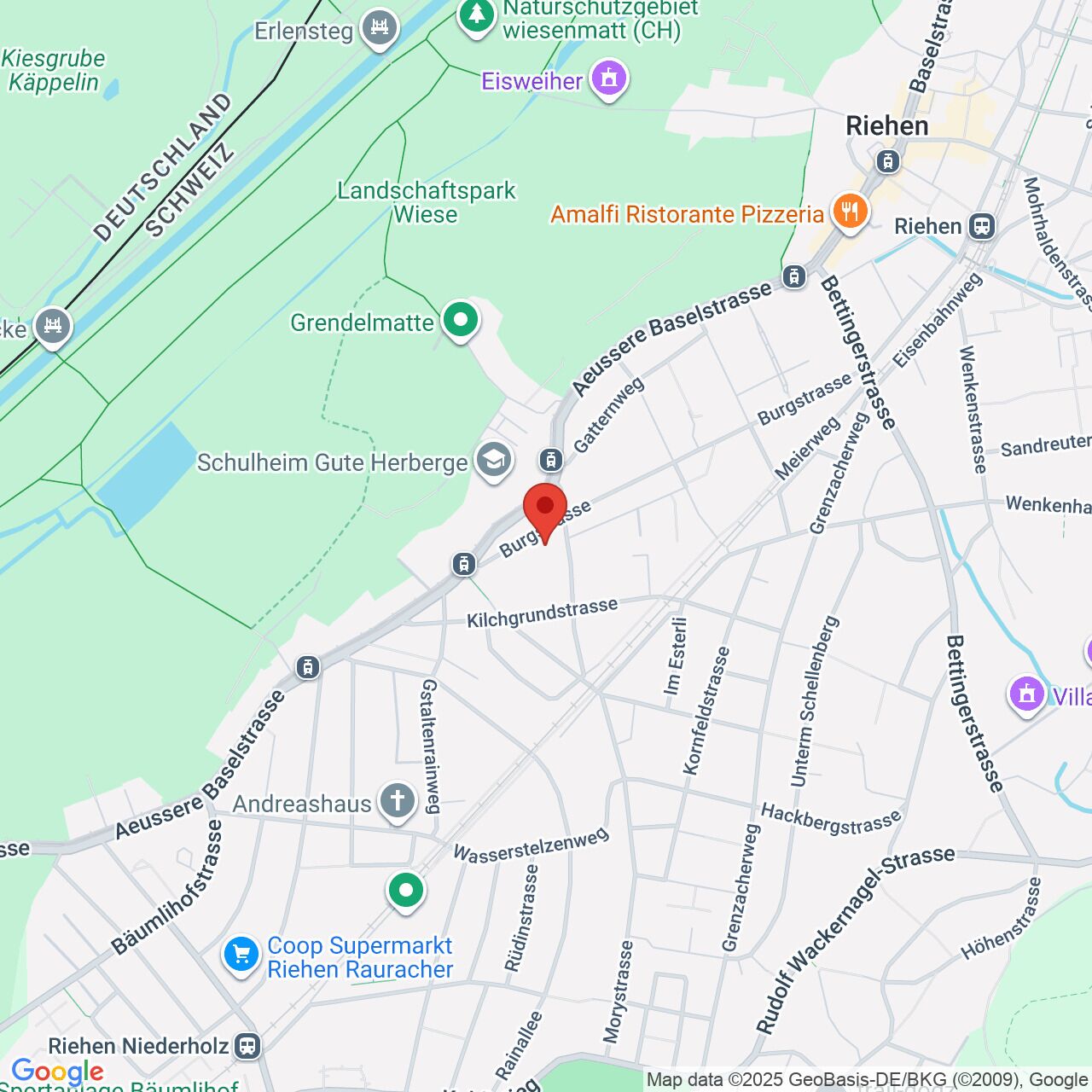 Die Wohnung ist hell, ruhig und sonnig. Sie haben viel Grün um sich herum und die ruhige Quartierstrasse liegt genau in der Mitte der beiden Tramstationen Burgstrasse oder Pfaffenloh. Das Tram 6 oder je nachdem die Nummer 2 bringen Sie sicher und schnell in die Stadt, an die Grenze nach Deutschland oder an den Bahnhof. Die Burgstrasse liegt im ebenen Teil von Riehen, das heisst, das Haus steht nicht im Hang. Ein zusätzliches Plus: Das Naherholungsgebiet Lange Erlen liegt ein paar Minuten zu Fuss von der Eingangstür weg.