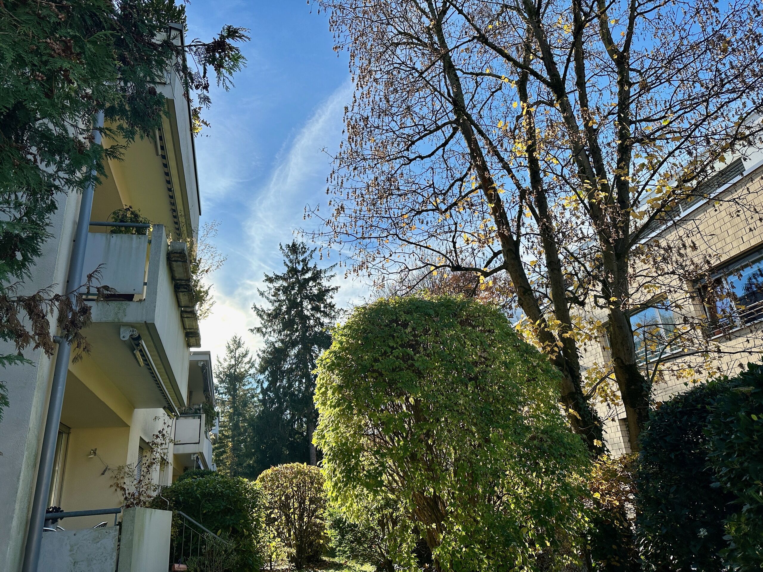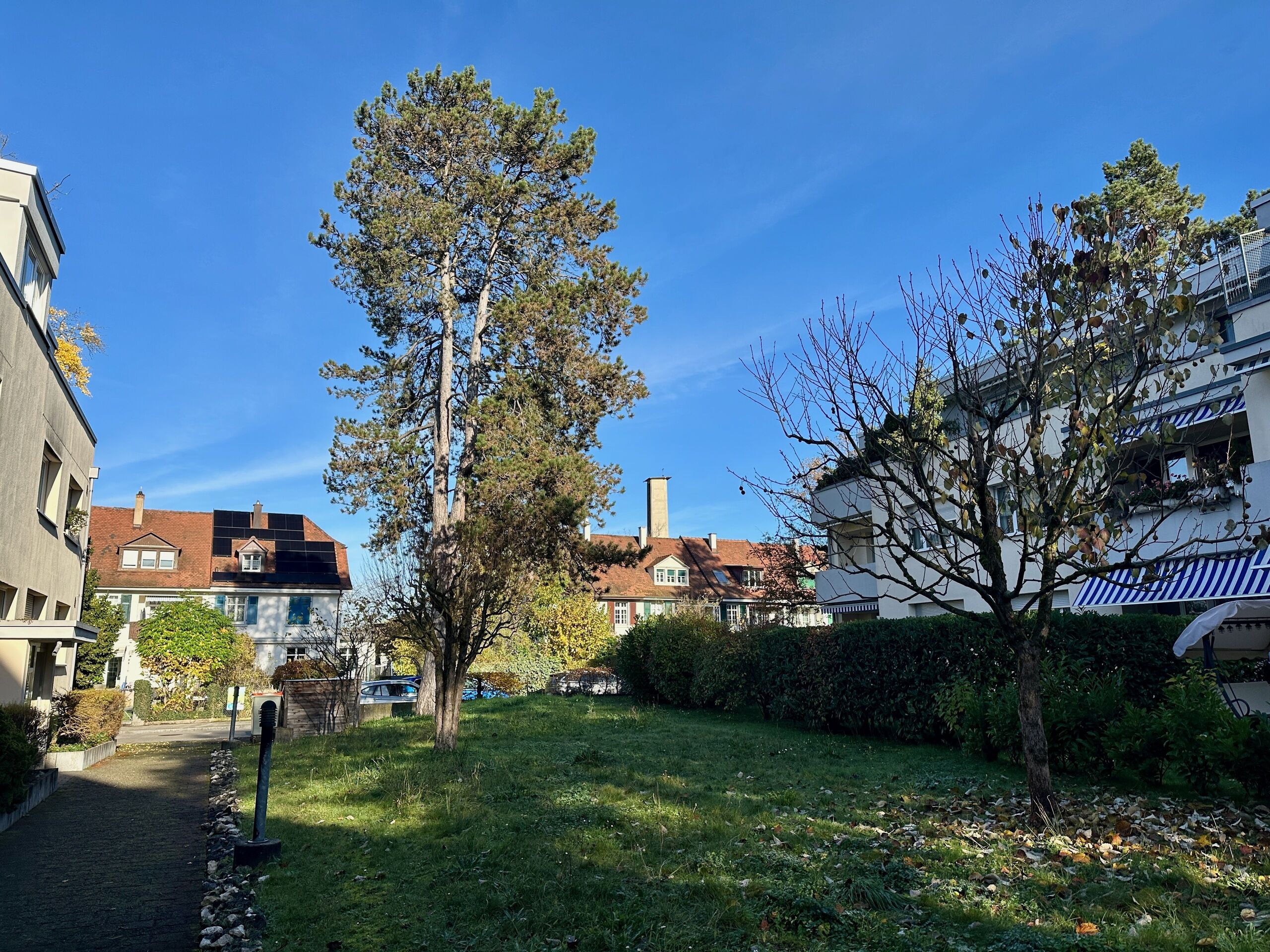 Das Herzstück der Wohnung ist das grosse und helle Wohnzimmer mit einer grossen Fensterfront und einem Blick ins Grüne. Von diesem Raum aus gelangen Sie auf den Balkon. Der Balkon bietet einen Blick auf alte Bäume und in die Natur. Er ist überdacht und an einem kleinen Tisch können Sie den Alltag ausklingen lassen und den Feierabend zu beginnen. Für Morgenmenschen bietet er die perfekte Gelegenheit, den ersten Espresso mit Vogelgezwitscher zu geniessen.