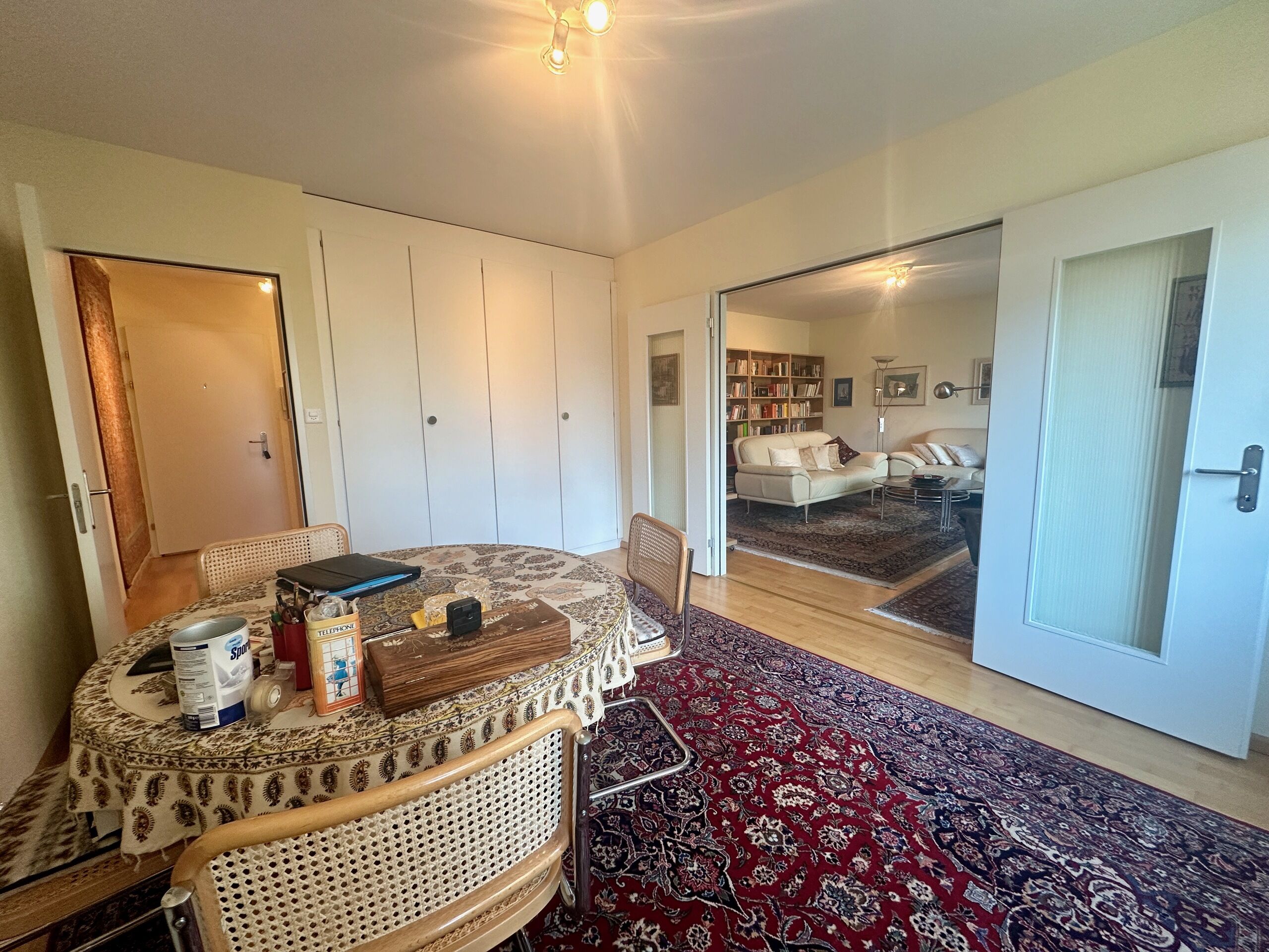 Das Wohn-und Esszimmer sind miteinander verbunden - im Moment mit einer Glastüre versehen - könnte aber auch wieder mit einer richtigen Wand abgetrennt werden. So wie die Wohnung jetzt ist und dank dieser Öffnung fühlt sich die Wohnung gross und luftig an.