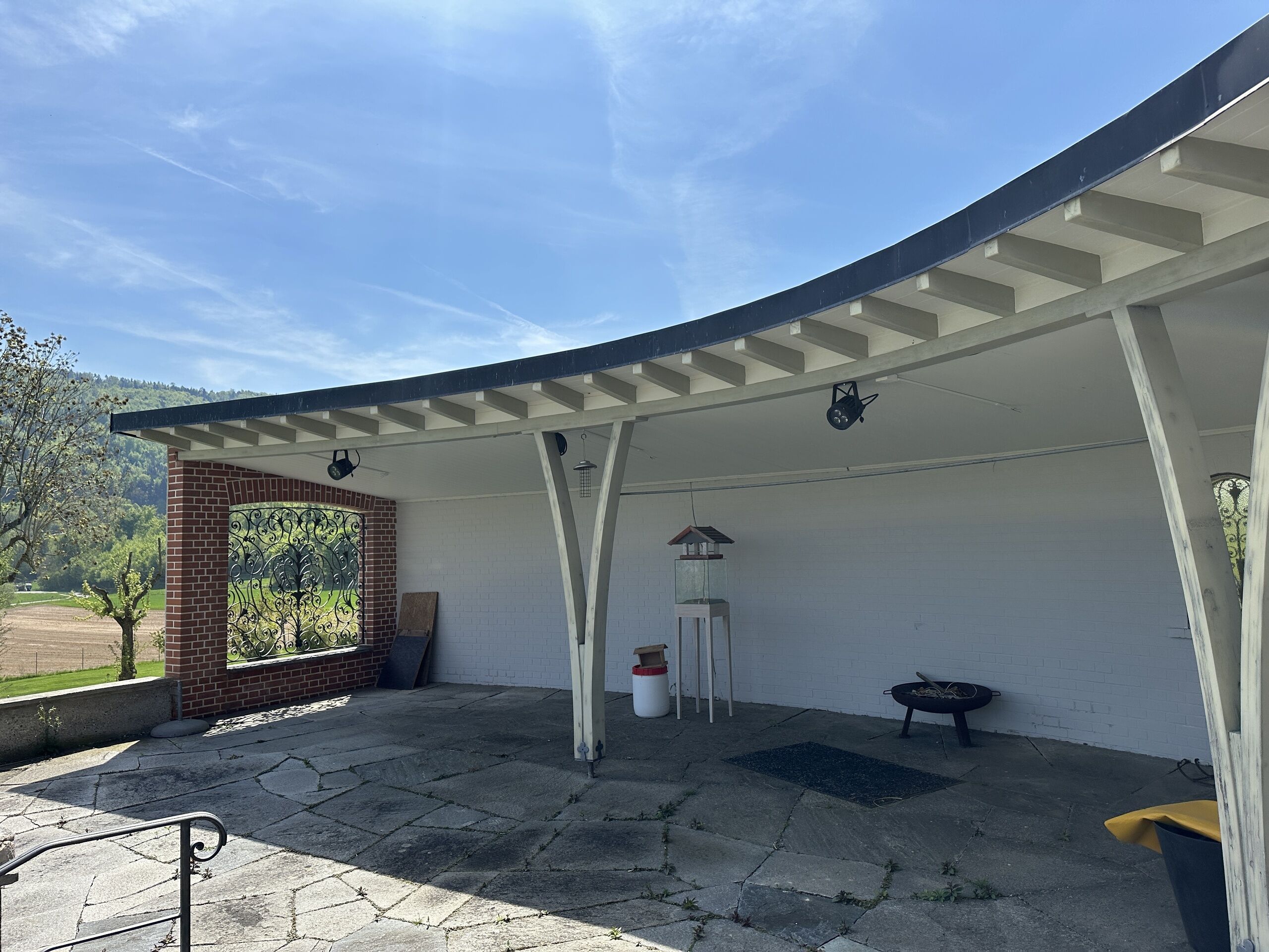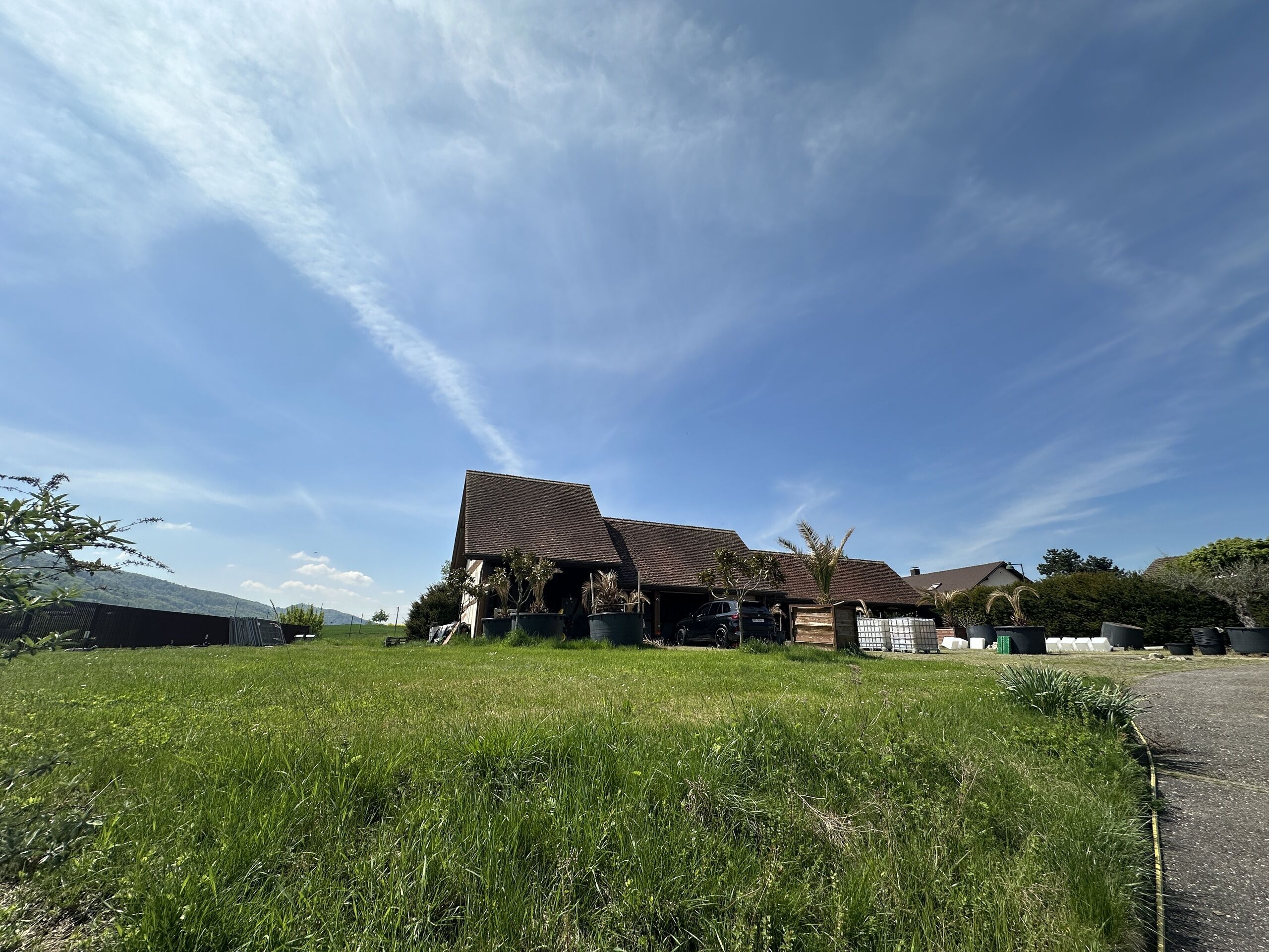 Die sehr grosse Garage verfügt über Platz für 2 Autos - zusätzlicher Stauraum für Motorräder, für Bastler oder früher gab es hier 2 Boxen für Pferde. Die könnten mit mobilen Teilen wieder nutzbar gemacht werden. Der untere Teil des Gartens könnte dann auch als Weide genutzt werden.