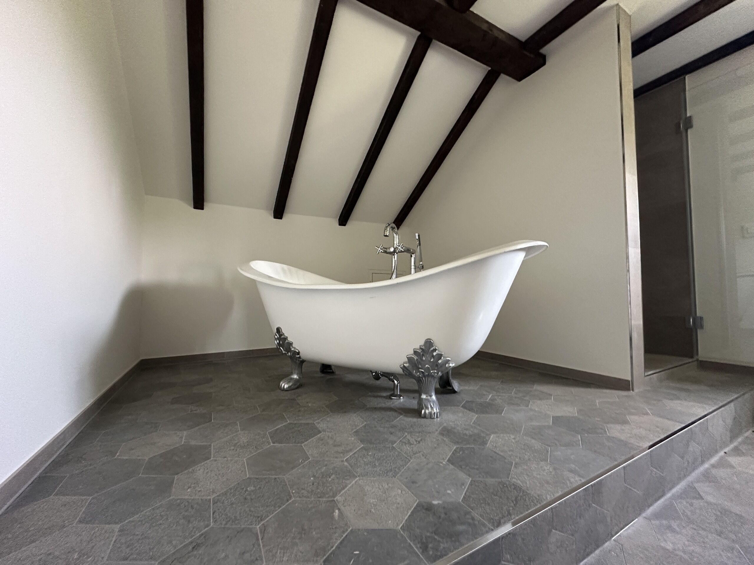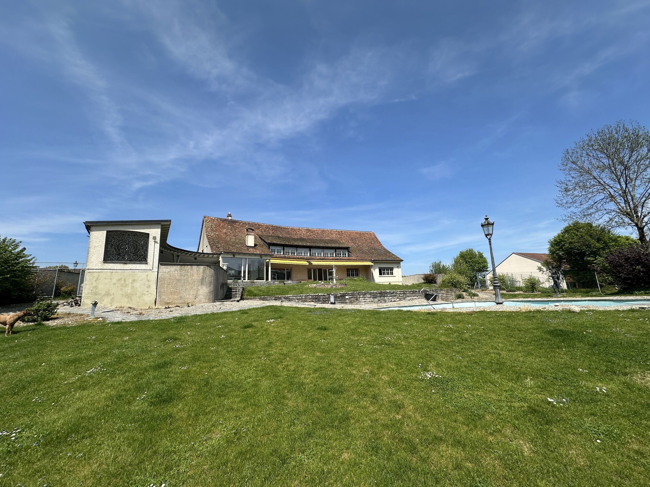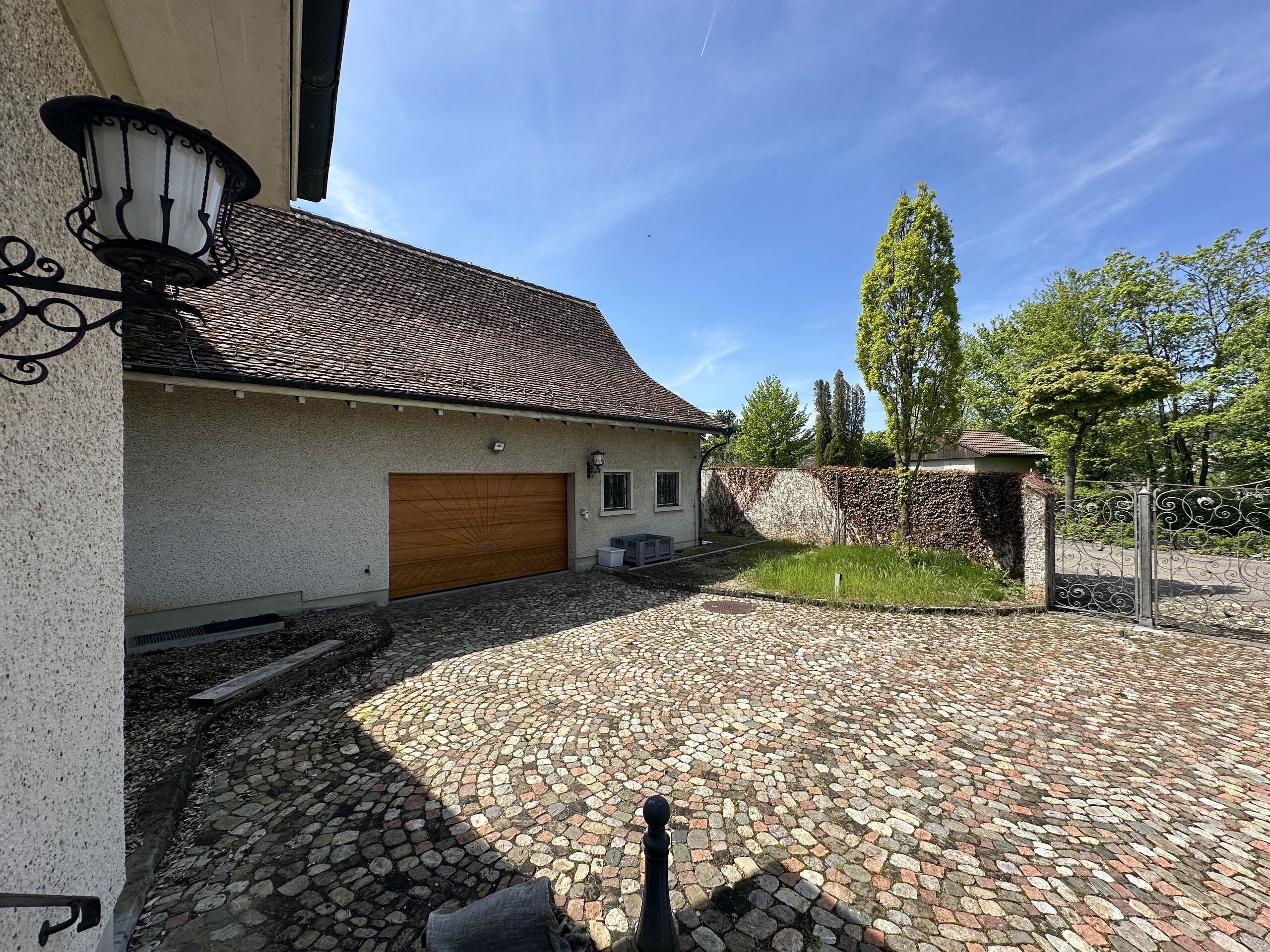 Schon vom Zugang des Anwesens, welcher durch ein wunderschönes Schmiedeeisernes Tor erfolgt, dann bei der Überquerung des gepflasterten Innenhofes lassen erahnen, was für ein schönes Objekt dies ist. über eine kleine Treppe gelangen Sie zum Hauptportal und in den schönen Innenraum, welcher mit einem grosszügigen Entree beginnt. Der Treppenaufgang und die Sicht auf den Garten lassen bereits diesen Raum magisch erstrahlen und geben Lust auf mehr.